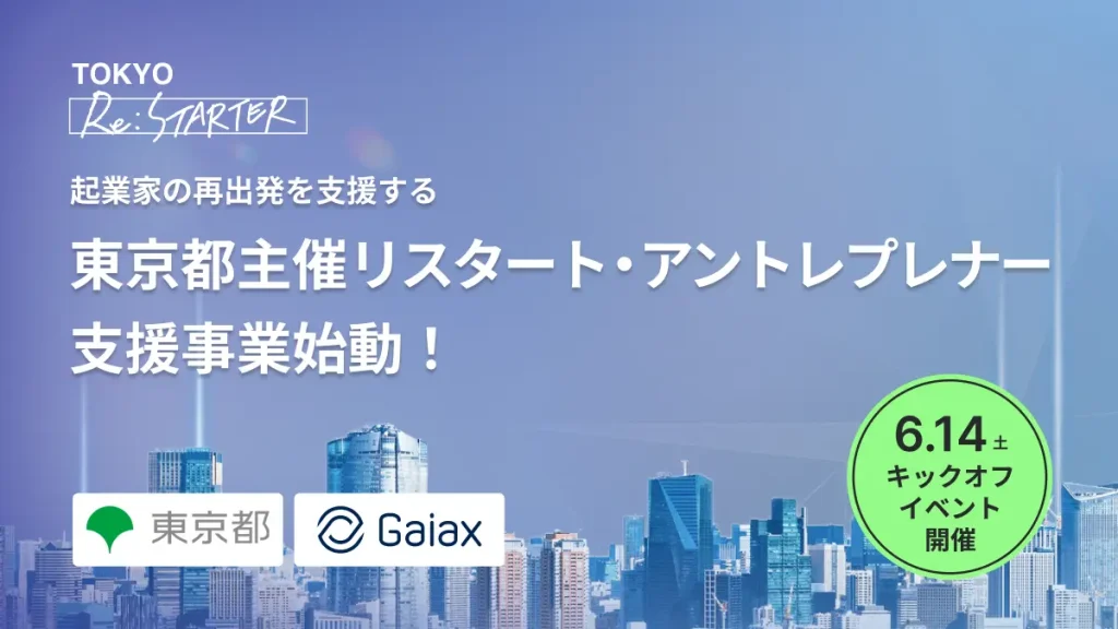 起業経験者に特化!再起業を支援する東京都主催 「TOKYO Re:STARTER」が始動